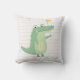This pillow features a cute crocodile illustration with a yellow flag and horizontal lines. It is easily customisable with a name or a short phrase.