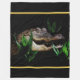 Crocodile predator mural head behind green flowers with a black background in this animal world with gold foil texture