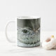 Photograph of a crocodile head and "smile" printed on both sides of mug.
