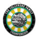 Dive into this bold circular design showcasing a crocodile in a serene lake with a sharp target focus