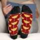 Croissant icon. Seamless pattern. Custom background colour. Custom top stripe colour. Custom text on each sock.