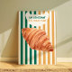 Bring a touch of Parisian charm into your space with this stylish croissant poster featuring the phrase “Un Croissant S’il Vous Plaît.” Designed with bold vertical stripes in rich green, warm mustard, and soft neutrals, this artwork captures the essence of a cozy French café with a modern retro twist.