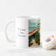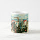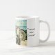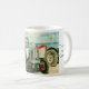 A white coffee mug with an image of tractors on the beach at East Runton, Nr Cromer, Norfolk, UK; from a soft pastel painting by Judy Adamson. Greeting Cards, prints and posters also available