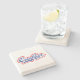 The coasters are gorgeous, a quality feel and heavy weight. They look like a precious archeological find. A rustic stone juxtaposed with a modern floral black and white print. I like the way the print goes slightly imperfect on the cut stone edges giving them a kind-of natural beauty.