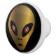 Crop Circle Gold Ancient Alien cabinet knob. Gold metallic alien head with red rhinestone ruby eyes. Alien themed knobs for cabinets or draw pulls. Great for bathroom and kitchen knobs for ancient aliens earth mystery art lovers. You can change the colour background of your golden alien home decor. No actual rhinestones will be used in this design.