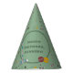 These custom party hats are perfect for backyard parties and picnics especially if a game of croquet is going to be part of the festivities. They feature illustrations of croquet mallets, balls and wickets set against a jade green background. Your custom message is in in bold darker green lettering.