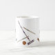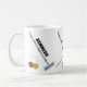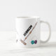This personalised coffee mug features illustrations of different equipment from a croquet set with mallets, balls and wickets graphics. The illustrations wrap around the mug. The name appears on both sides of the mug.