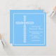 Start your event off right with our trendy blue & white baby baptism / christening invitation. Invitation features a blue background with a fancy white cross.. Easy to customise, just add your event information and you're all set to go.