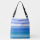 This lovely cross-body tote bag is shown in a blue stripes print.