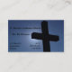 A perfect business card for anyone employed by a church or that volunteers at at church. It features a large black cross on the right with a blue sky as a background. Your information goes on the left. On the back is a space for a bible passage and the church times. All text is customisable.
