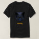 Funny Custom Cat Saying T Shirt. A scowling and grumpy photograph of a funny cross black cat with scary yellow eyes on a black background with a customisable funny message. Perfect for a teen, not that teenagers are grumpy? Surely not! If you love funny cat t shirts, this is a cool cat gift for a cat lover. A dark and brooding scary cat photo, he's glowering at you! He's not a grumpy cat, he's a cross cat! From an original cat photograph of Cross Cat by Paul Stickland. ©Paul Stickland