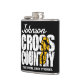 The flask itself is fine. It’s a cheap flask, obviously bought in bulk, however am prepared to overlook that. Given that it is a personalized item, I would have liked to have seen gift boxing instead of the generic packaging. Terrible printing, and/or quality. It’s a cheap, tacky vinyl. It is not cut straight and is also applied in a way that it is overhanging the bottom, causing the glue to catch on items and it will eventually roll and tear, damaging the wrap.