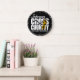 Purchased this online and it got delivered quickly. It was a present for my Dads 70th birthday. He loves clocks so decided to get him one with something written on it. Battery went in and it started working straight away. Dads had no issues with it. Printing was just how it came up online.