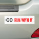 White cross country bumper sticker. Cross Country symbol on left hand side. "Run With It" in red on right hand side.