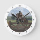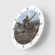 This Wall Clock features an original digital artwork of a horse and riding jumping over a farm gate, created in Vue by artist Jayne Wilson.