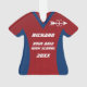 Red cross country jersey custom with blue sides and colour. Personalise with runner's name, team and date.