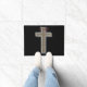 This cross door mat features a black background, providing a clean and simple esthetic that complements various entryways. Its design not only enhances the visual appeal of your home but also serves a practical purpose by keeping dirt and debris at bay. Ideal for both indoor and outdoor use, this mat combines functionality with style, making it a perfect addition to any entrance.