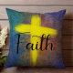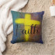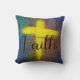 Throw pillow with a hand drawn cross in yellow and the word "Faith" on a soft multi colour background. Coordinating back. Add your own message to the back or leave blank. View all of our decor in our Zazzle store!