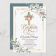 Cross Floral Roses Frame Baptism Invitation