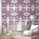 This geometric pattern imitates decorated ceramic tiles. It’s then perfect for use, in a kitchen for a splashback for example.