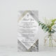 Thank you card for a funeral service featuring a printed marble background and printed gold details with elegant text and a cross.