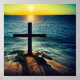 Cross in the Sand at Sunset Poster