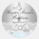 Baptism Sticker. Pretty lace bow & silver cross. Customise with your own details. Please Note: All flat images!