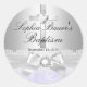 Baptism Sticker. Pretty lace bow & silver cross. Customise with your own details. Please Note: All flat images!