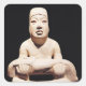 Cross-legged figure holding a baby, Olmec Square Sticker