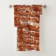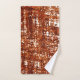 Imperfect crossed lines and small squares with a carved or sculpted effect in shades of brown and dark orange that resemble the colour of rust.