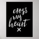 Inspirational poster displaying the phrase "Cross My Heart" in white brush script with an organic ink texture to achieve an authentic, hand lettered look. Designed to look great on all portrait orientated poster sizes. Please do check if the image needs to be repositioned or resized after changing the poster size.