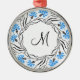 Cross-stitch Cornflower Circle Monogram Initial Metal Ornament