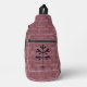 Cross-body bag in an abstract red print and sporting a Simon's Rock solid black sapling