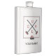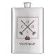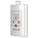 Flask featuring a crossed brooms design in red and charcoal. Perfect for curlers and curling fans. Option to customise with your name.