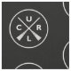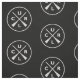 Fabric featuring a pattern of crossed corn brooms in white on black background. Perfect for curlers and curling fans.