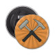 This magnetic bottle opener features a pair of crossed rock hammers on an orange sunburst background. You can personalise it by adding your initials or name in the box to the right.