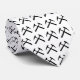 White tie with repeating pattern of black crossed rock hammers graphics.