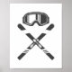 Crossed Ski design in black and white color. Gift for winter sports lovers, who enjoy skiing outdoors in the mountains. A perfect present for the winter holidays.