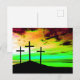 Crosses on a hill Colourful sunset GOD IS GOOD Postcard