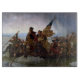 The year was 1776, and the American Revolution was in a perilous state. General George Washington's Continental Army, outnumbered and outgunned by the British forces, faced a desperate situation. Morale was low, supplies were scarce, and the army was shrinking as soldiers' enlistments expired. - Washington knew he needed a bold move to turn the tide of the war. He devised a daring plan to cross the icy Delaware River on Christmas night and attack the Hessian mercenaries stationed in Trenton, New Jersey. The Hessians, known for their heavy drinking and partying, were likely to be off guard during the holiday season. - On December 25th, the Continental Army gathered on the Pennsylvania side of the river. The weather was bitterly cold, with snow and sleet falling. The river was partially frozen, making the crossing even more treacherous. Despite the harsh conditions, Washington's men, inspired by their commander's determination, prepared for the perilous journey. - Under the cover of darkness, the army embarked on small boats and rowed across the icy river. The crossing was arduous, with some boats getting stuck in the ice and soldiers falling into the freezing water. But the Continental Army persevered, driven by the hope of victory. - Upon reaching the New Jersey shore, the troops marched towards Trenton. The surprise attack caught the Hessians off guard, and the Continental Army quickly overwhelmed them. The battle was swift and decisive, with the Americans capturing over 900 Hessian soldiers and seizing valuable supplies. - The victory at Trenton was a turning point in the American Revolution. It boosted the morale of the Continental Army and the American people, and it showed the world that the American rebels were a force to be reckoned with. General George Washington's daring crossing of the Delaware River became a symbol of courage, determination, and the indomitable spirit of the American Revolution. - This work by Emanuel Leutze (1816–1868) is in the public domain in its country of origin and other countries and areas where the copyright term is the author's life plus 100 years or fewer.