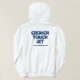 Love these hoodies. Got one for me and my husband. Fit is great, nice weight material (not too heavy, but not too light). Screen printing is well done. Everyone on our jetty is jealous! Screen printing is well done. We'll placed on the hoodies. Nice and clear with sharp edges.
