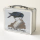 A colour pencil drawing of a curious crow investigating a shiny harmonica he has found adorns this lunch box! Customise by changing the text to suit yourself!