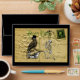 Funny gothic Steampunk wearing a wedding grooms top hat crow and praying skeleton on a vintage retro postcard background digital collage on a vintage postcard. Visit the VINTAGEPRINTSTORE for matching vintage gifts and thousands of gift ideas.