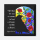 Crow by stained glass window with red roses design - original art. NOTE: looks better as a square magnet.