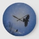 Crows fly in the moody star filled night sky on this mystical blue wall clock.