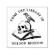 This custom ex libris stamp showcases a sophisticated circular design, featuring elaborate gothic typography that reads "From The Library Of," flanked by intricate ornamental flourishes. At its heart lies a mesmerising illustration of a skull resting upon open books, crowned by a watchful crow, embodying the chilling allure of classic gothic storytelling.