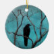 A lone crow in a winter tree made from my photograph. The front is an aqua colour and the back is fuchsia.