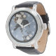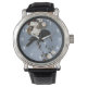 Fashion watch for those times when you're feeling a little bit mysterious. The background of the watchface is a moody blue, and the illustration is of a raven on a branch with moonflowers. It's so pretty! Numbers are white. We're showing this design on a plain, elegant watch style with a black watchband, but it's also available on several other styles of watch and colours of watchband - for adults and kids - in our shop. Design concept copyright Scarebaby Design.