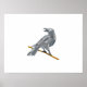 Low polygon style illustration of a crow bird perched on a piece of wood looking back set on isolated white background.