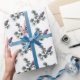 A crow wearing a red and white Santa cap on pine branches on this elegant winter wrapping paper.